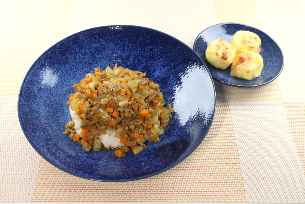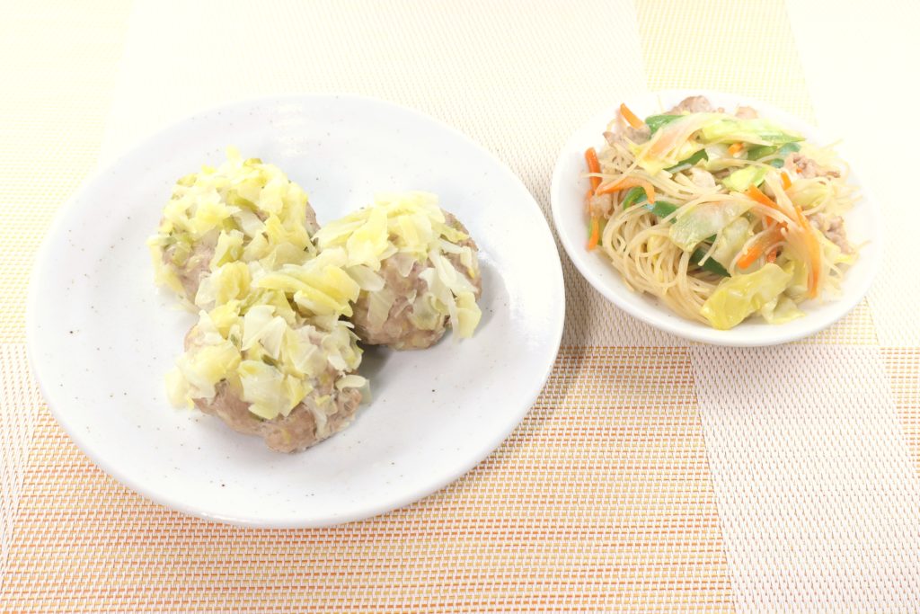 -お試しコース1日目- -お試しコース2日目- 【主菜】玉ねぎとひき肉のキーマカレー 【副菜】じゃがまるコーン(子供向けメニュー) 【主菜】春キャベツの花シュウマイ 【副菜】ビーフン炒め(子供向けメニュー) ※お子様が食べやすい献立を「子供向けメニュー」として表記しておりますが、